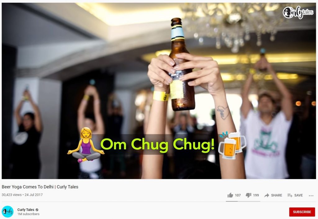 The video in question is not recent. It was shared by Curly Tales on its YouTube channel in July 2017. The video has captions that say ‘Om Chug Chug’ and ‘Yo-ga to try this!’