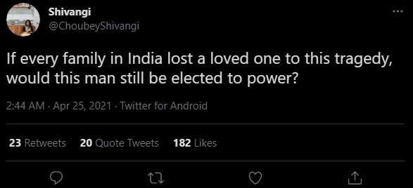 Then there are those who are wondering if Narendra Modi will still be voted to power if every family experiences a Covid-19 death.