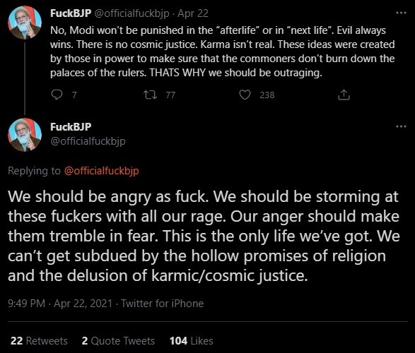 Some of them are arguing that wishing death upon those who disagree with their brand of politics is perfectly ethical. Ironically, they are calling Sanghis “ultrabigoted” even as they wish death upon them.