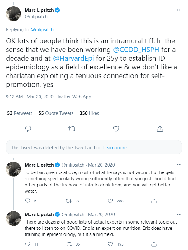 The Harvard ‘epidemiologist’ has tried to whitewash his double-speak or his sudden U-turns on his claims (such as the one on masks.) “We all misread a detail or a Y axis or an X axis. I feel like I’m pretty good at synthesizing what I read and trying to be able to translate it for the public,” he justified. Eric Feigl-Ding also took offence to comments made by Marc Lipsitch. “It’s pretty insane to make a claim that 20 percent is pseudoscience. I do not want to dignify all this pettiness in the middle of a pandemic,” he said in his defence.