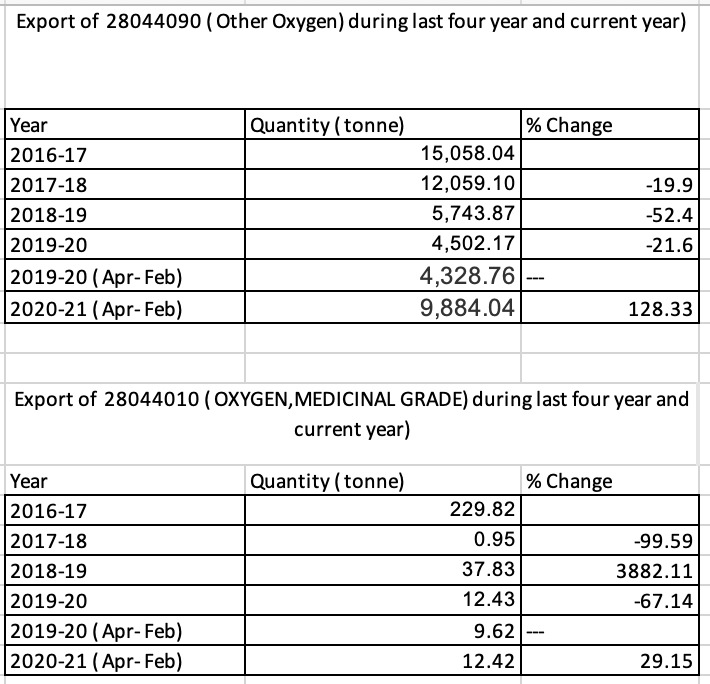 As per the government stats, India exported 15,000 MT tonnes of oxygen in 2016-17 while the export of medical oxygen was 229.82 in the same period.