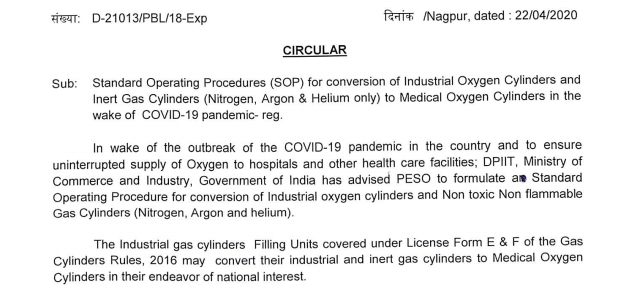 As the guidelines didn’t mention CNG, and it specifically said ‘non flammable gas cylinders’, it makes it clear that PESO had not allow conversion of CNG cylinders into medical oxygen cylinders. It is needless to say that Compressed Natural Gas (CNG) is a flammable gas, used mostly in automobile sector in India.