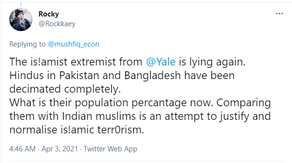 Another user wrote, “The Islamist extremist from Yale is lying again. Hindus in Pakistan and Bangladesh have been decimated completely. What is their population percentage now. Comparing them with Indian Muslims is an attempt to justify and normalise Islamic terrorism.”
