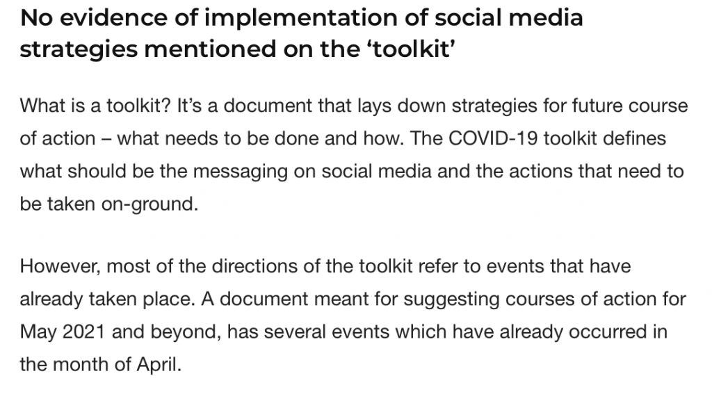 The maligning of the Kumbh Mela as ‘super spreader’ event, the unwarranted attacks against PM Modi for the Central Vista project, international media’s attack against the Modi government and its COVID handling, there have been various incidents in the recent past that suggest that the Congress supporters were acting in accordance with what was asked of them in the toolkit. Yet, the Alt News article states that no social media strategy was implemented.