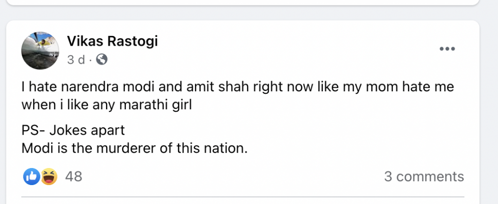 Dr. Rastogi references another post that was not in violation of any medical ethics but contained some general anti-Maratha sentiments, including calling PM Modi a “murderer”.