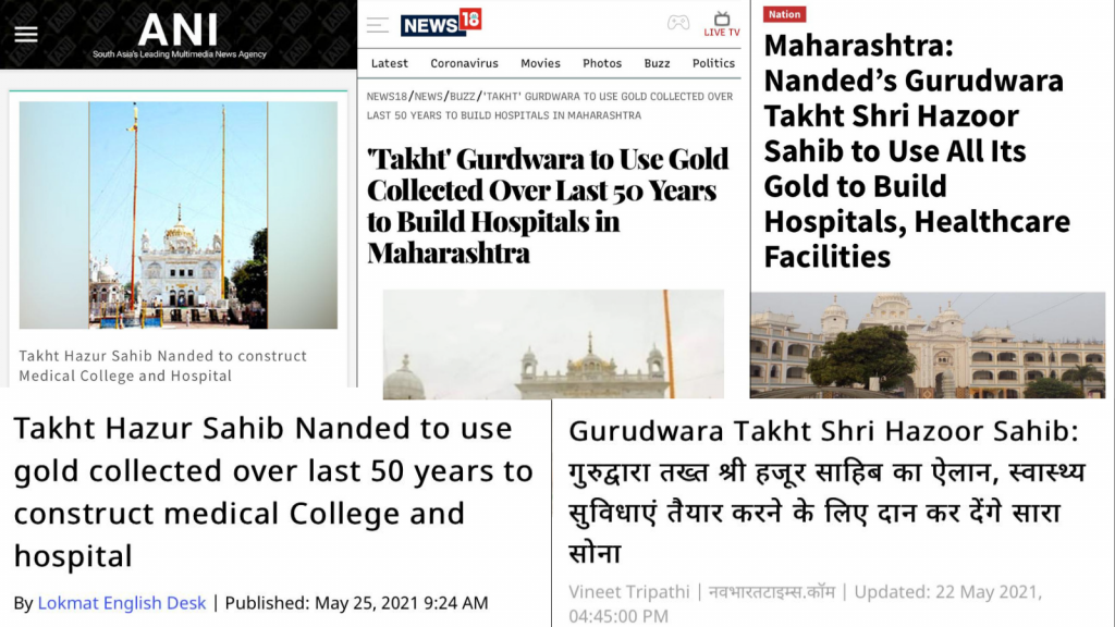 Upon verifying the news with Takht Shri Hazur Sahib’s PRO, several journalists revealed that the news of releasing gold collected over 50 years for schools and hospitals is misleading and without facts.