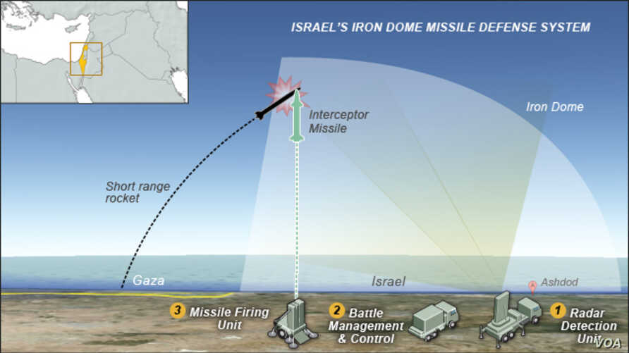 It is a three-central component consisting of interceptor batteries that shoot rockets out of the sky, a radar that tracks the rocket as it is fired across the border into Israel, and then advanced software that predicts the rocket’s trajectory.