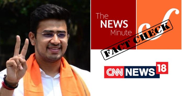 Based on the reports published by The News Minute, several other media portals also published their reports claiming that Tejasvi Surya had apologised for his so-called communal actions inside the BBMP war room on Tuesday.