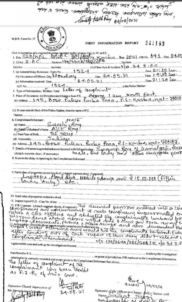 A Twitter user shared the copy of an FIR filed against Sengupta on Monday for allegedly kidnapping a businessman and demanded a ransom of Rs 1 crore.