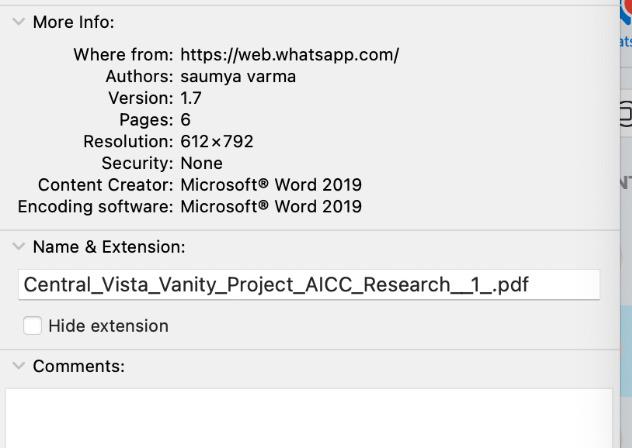 Earlier today, it was revealed that the creator of the document ‘Central Vista Vanity Project AICC Research’ is one Saumya Varma, a Rajeev Gowda aide.