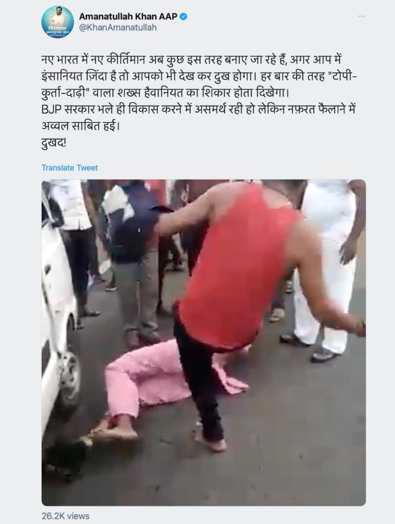Yet, AAP leader Amanatullah Khan falsely gave a communal flair to the incident, alleging that the man was beaten by the mob because he was an observant Muslim who dutifully wore skull cap, a kurta and grew a beard.
