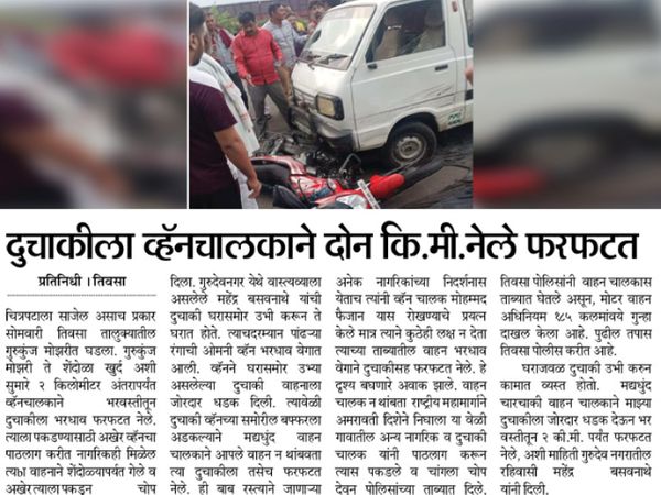 According to Divya Marathi, a Marathi vernacular daily under the umbrella of Bhaskar Group, the incident pertains to the Amravati district in Maharashtra. On June 15, 2021, a bike parked outside the residence of a person named Mahendra Basavanathe was rammed by a speeding four-wheeler and dragged along for about 2 km.
