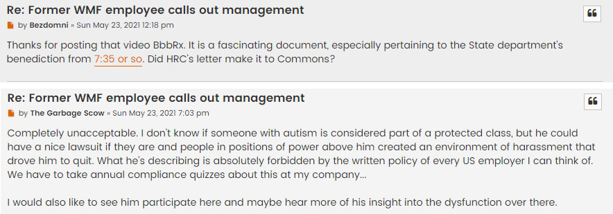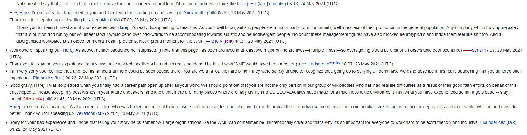 Belov, a Wikipedia editor, said, “Thank you for being honest about your experiences, Harej. It’s really disappointing to hear this. As you’ll well know, autistic people are a major part of our community, well in excess of their proportion in the general population. Any company which truly appreciated that it is built on and run by our volunteer labour would bend over backwards to be accommodating towards autistic and neurodivergent people. No doubt these management figures have also mocked neurotypicals and made them feel like shit too. And a disorganised workplace is a hotbed for mental health problems. Not a proud moment for the WMF.”