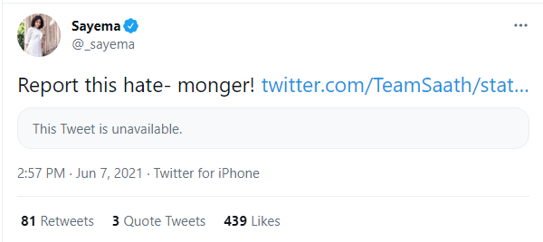Team Saath Official was the go-to Twitter account for left-liberals and rabid Islamists to silence nationalist voices in the country. The troll account, which would viciously attack other Twitter users in an attempt to embolden its narrative, became the subject of Twitter India’s wrath. Infamous for getting Twitter handles suspended, Team Saath ran into the same trap.