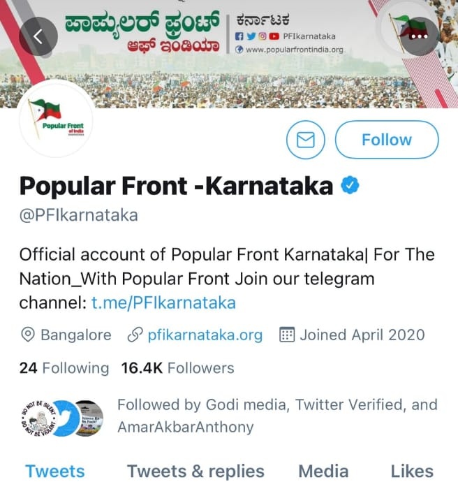The handle of Popular Front of India’s Karnataka unit, which has over 16k followers, has now been bestowed with the ‘blue tick’ by Twitter.
