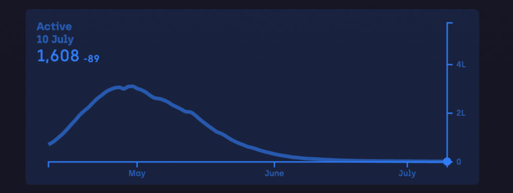 The state is now left with under 2,000 active cases. Only 1,608 active cases in Uttar Pradesh till Saturday, of which the majority of them are under home isolation.