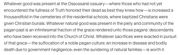“Whatever sacrifices were exacted in pursuit of that grace—the suffocation of a noble pagan culture; an increase in disease and bodily death due to government negligence; even the sundering of natural families—is worth it“