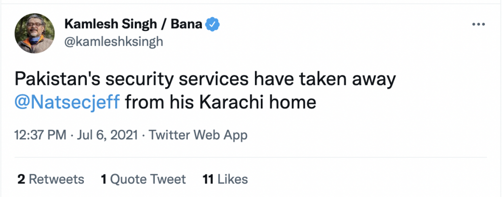 As per reports, Pakistan’s security services have taken him away.