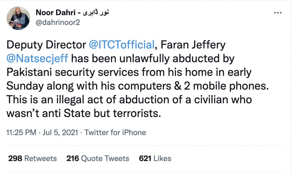 Social media has been abuzz with reports of UK-based Pakistani commentator and security analysit Faran Jeffery was abducted from his Karachi home on Sunday.