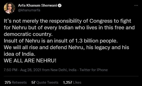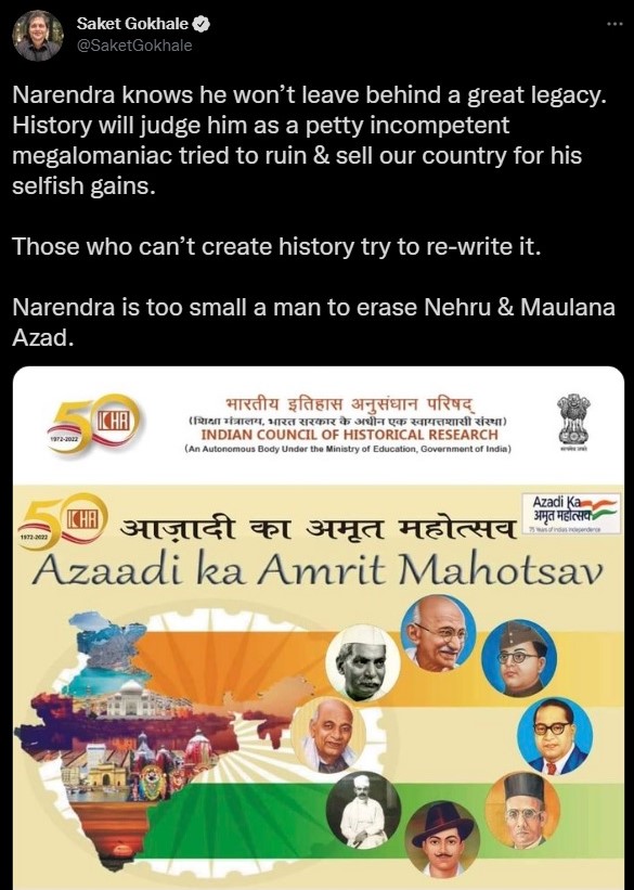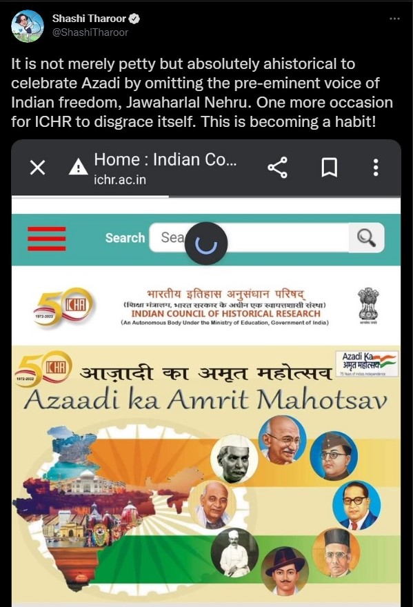 The Congress party and its conglomeration of sympathizers and trolls accused the Narendra Modi government of attempting to undermine the legacy of Jawaharlal Nehru. Senior party leader Shashi Tharoor said, “It is not merely petty but absolutely ahistorical to celebrate Azadi by omitting the pre-eminent voice of Indian freedom, Jawaharlal Nehru. One more occasion for ICHR to disgrace itself.”