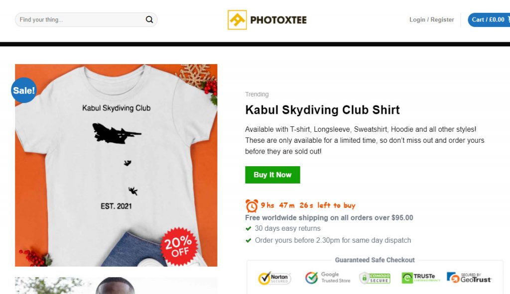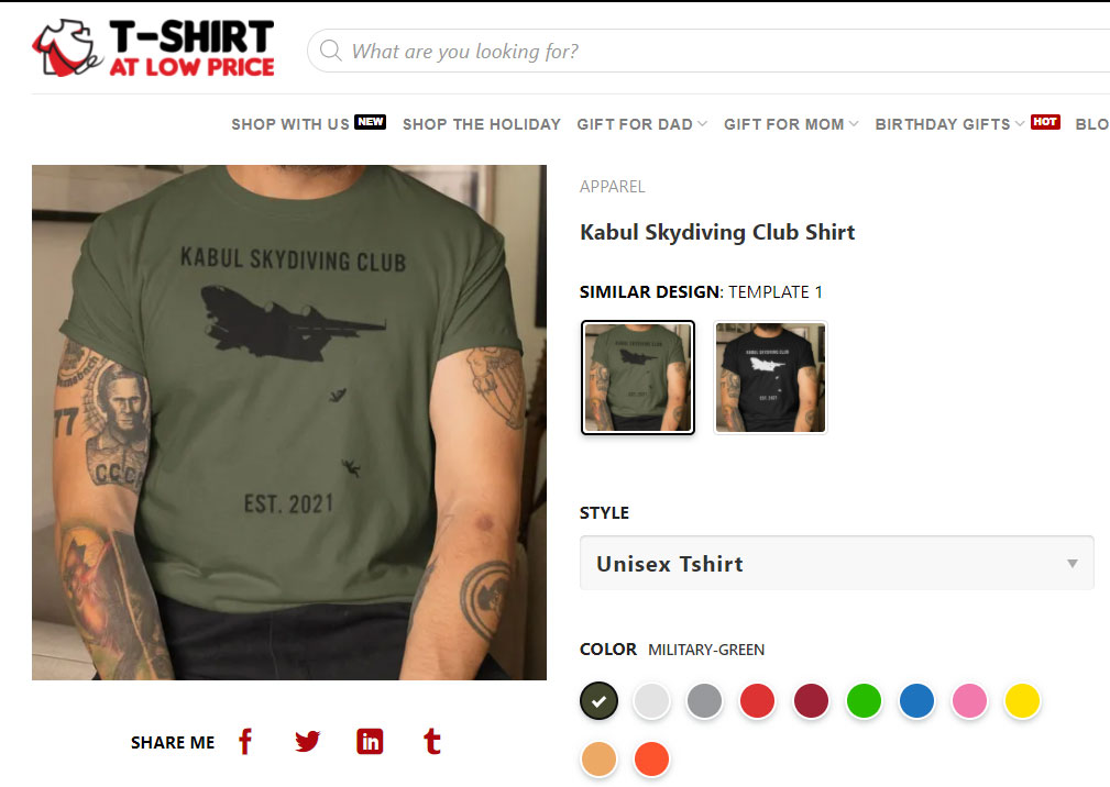 Netizens demand the ‘Kabul Skydiving Club’ t-shirts be removed