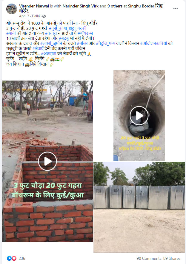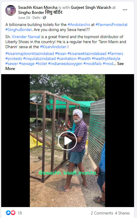 It seems like Virender Narwal has been working alongside Rakesh Tikait from the very beginning of the protests, and he was seen talking about inspecting work-related installing washrooms and other facilities for the farmers possibly illegally on the roadside near the Singhu border.