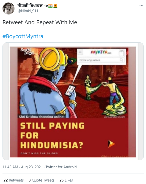 E-commerce lifestyle platform Myntra is embroiled in controversy after a social media post from 2016 featuring the brand has gone viral. Netizens have called for a boycott of the platform after the old Hinduphobic post allegedly created by a content marketing company Scrolldroll started doing rounds on social media.