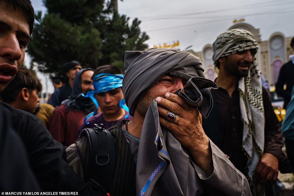 A man was seen crying as he watched his fellow Afghans get wounded after Taliban fighters used gunfire.