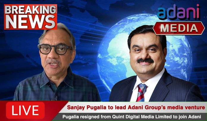 Indian corporate major Adani Group has decided to launch a media venture. This was confirmed after the company announced the appointment of former Quint Digital Media president Sanjay Pugalia to head the new media initiative.
