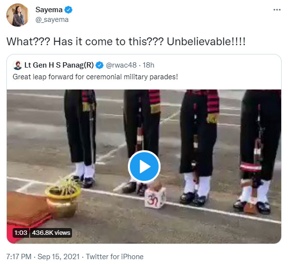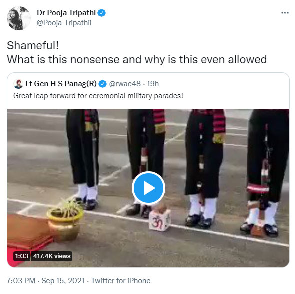 Ex-army officer and father of actress Gul Panag, Lieutenant General Harcharanjit Singh Panag (Retired), posted a video of Army Band playing Hindu Aarti Music during Beating Retreat ceremony with a misleading title. In the tweet, he said, “Great leap forward for ceremonial military parades!” and tried to project as it is something new that has happened in the ceremony.