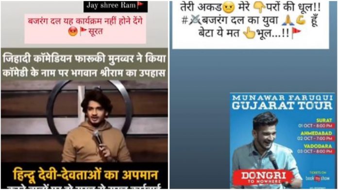 The members of the Bajrang Dal in Surat have issued a warning to the organisers of an upcoming show in the city that would feature ‘Comedian’ Munawar Faruqui, who is accused of insulting the Hindu victims of the Godhra riots of 2002, peddling conspiracy theories of RSS involvement in the Gujarat carnage and mocking Hindu deities.