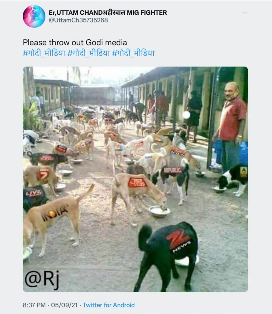 One of the social media users, who seemed to align with the Congress ideology, shared a picture likening dogs with media channels for not hating on the Modi government.