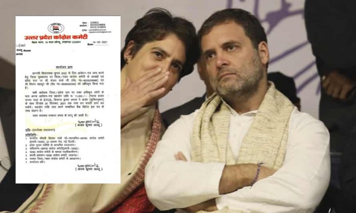 For 2022 assembly election in Uttar Pradesh, the state unit of the Congress Party has issued a circular for ticket seekers of the party to deposit Rs 11,000 as ‘donation’ along with along their application.