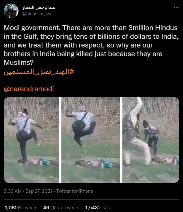 Abdul Rahman Al-Nassar used the violence at Darrang to spread similar propaganda against India. He said, “There are more than 3million Hindus in the Gulf, they bring tens of billions of dollars to India, and we treat them with respect, so why are our brothers in India being killed just because they are Muslims?”