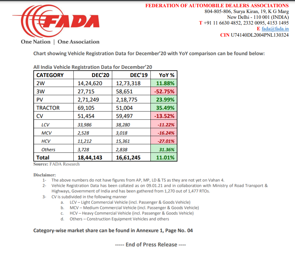 The same can be substantiated by the Federation of Automobile Dealers Associations (FADA) data that shows a 35 per cent year-on-year rise in tractor registrations in December 2020.