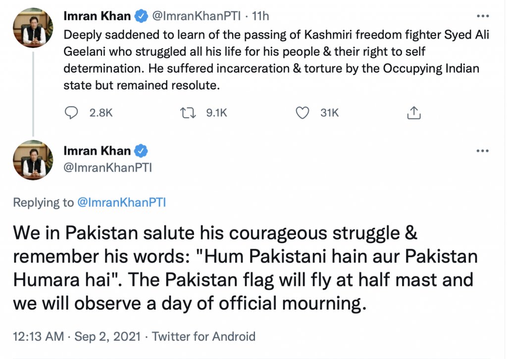 With active backing from Pakistan, Geelani advocated for an armed struggle to resolve the Kashmir issue and opposed the government of India. Geelani was one of the masterminds of the separatist movement in Kashmir, who founded the Hurriyat Conference in 1993. He was a staunch supporter of Jammu and Kashmir’s accession with Pakistan.