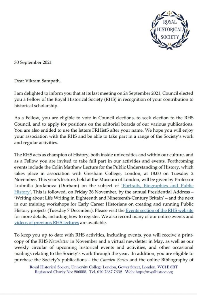 Absolutely delighted to share that the @RoyalHistSoc has elected me as a Fellow of the Royal History Society in recognition of “contribution to historical scholarship.” I’m immensely grateful for this rare honour both to me & Indian historiography as a whole! pic.twitter.com/zc7MRObt1W
