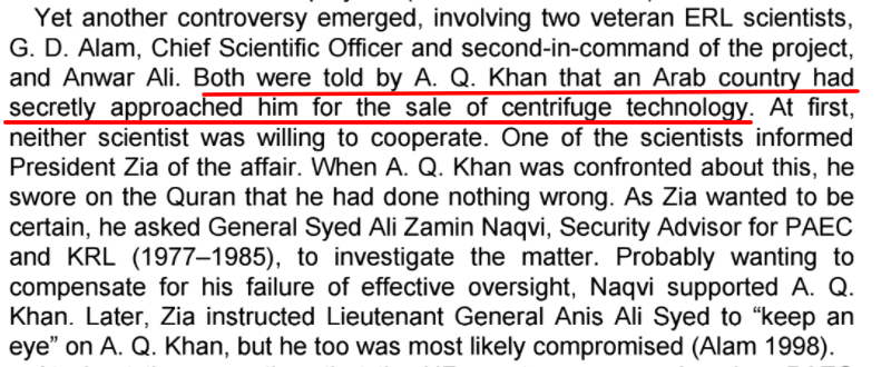By the mid-1980s, Abdul Qadeer Khan had ensured that Pakistan was on its track to build the nuclear bomb. This despite the fact that he was personally not involved in the design of nuclear devices, weapon testing or calculations. After discovering a window to benefit himself monetarily, he began creating companies in Malaysia and Dubai to sell designs, parts and centrifuges in the black market. His customers included the dictatorial regimes of Libya, Iran and North Korea. He almost gave in to a request to sell centrifuge technology to an unnamed Arab country until one of his confidantes confessed the matter to Pakistan PM Zia ul Haq.