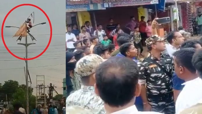 A video from Chhattisgarh’s Kawardha district has surfaced online where allegedly a Muslim mob can be seen uprooting a saffron coloured flag and tearing it, leading to clashes and stone-pelting.