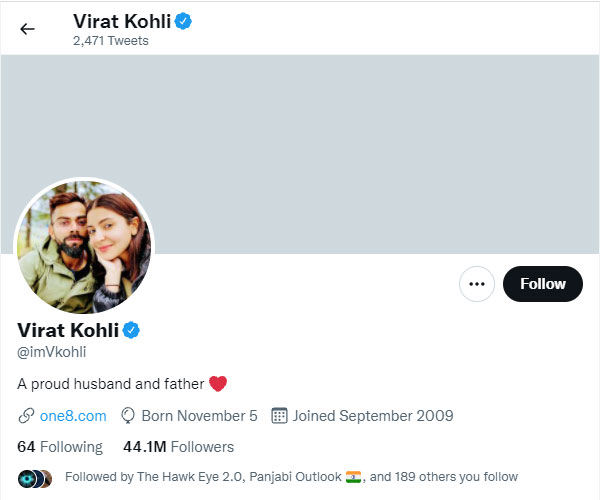 The screenshot of the Archived version of Kohli’s Twitter profile from October 17 shows that the Pinterest link was visible in the bio, as he had mentioned in the video and post.