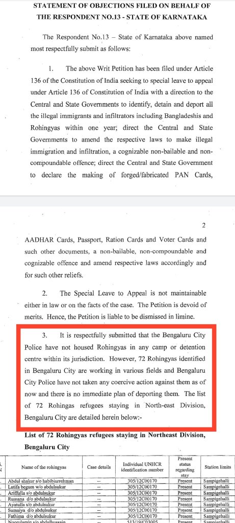 The Karnataka government had said this while responding to a PIL filed by an advocate and former spokesperson of Delhi BJP Ashwini Upadhyay. In the PIL filed in 2017, the petitioner had urged the court to pass suitable directions to the Centre and state governments to identify, detain and deport all illegal Bangladeshi and Rohingya immigrants within a year. Upadhyay had also demanded proper legislation to make illegal immigration and infiltration a cognizable non-bailable offence and declaring the making of fabricated identity cards a non-bailable offence. While stating no coercive action will be taken, the Karnataka government had even sought dismissal of the PIL stating that it had no merit and hence not maintainable.