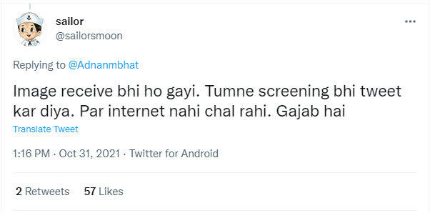 Another user tweeted about the contradictions in the story of Adnan Bhat. “You managed to receive the image. You were able to share it on Twitter. But somehow, your internet isn’t working. Wow,” he said.
