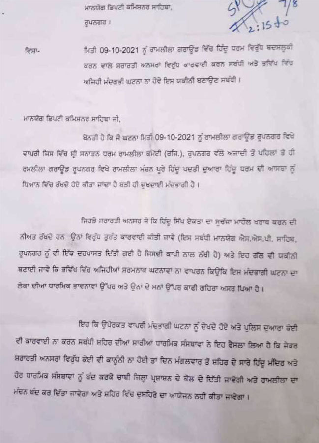 In the complaint, the organizers requested DC to take action against the miscreants who wanted to divide Hindus and Sikhs so that such incidents do not happen in the future. They further added if no action was taken against the attackers, the Hindu groups, temples and organizations would shut down their gates and submit the keys to the city administration. They said Ramleela proceedings would also seize if no action was taken.