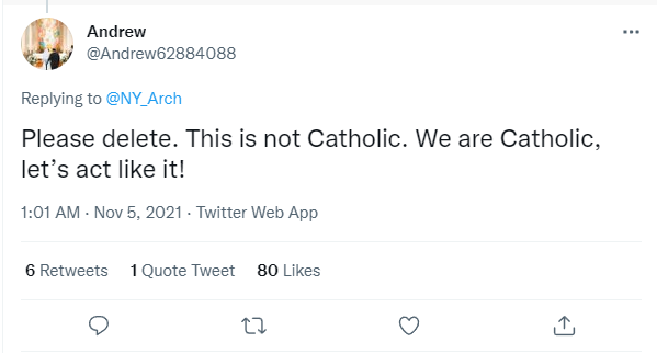 One Christian fanatic wrote, “Please delete. This is not Catholic. We are Catholic, let’s act like it.”