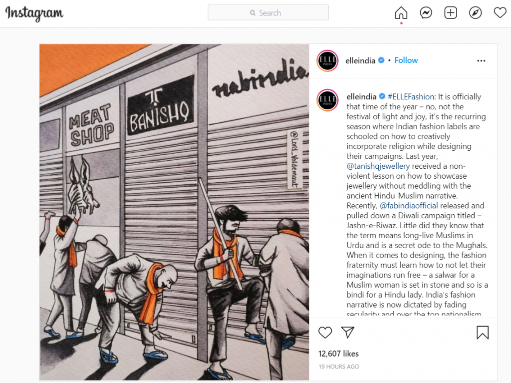 The article did not please anyone and faced severe backlash from the Hindu community. On the other hand, Elle India used an illustration in which Hindus were seen closing down businesses of FabIndia etc. Interestingly, the illustration was not included in the article. Soon after the illustration and snippet of the article got published on Elle India, where they had tagged both the author and the illustrator, they faced backlash.