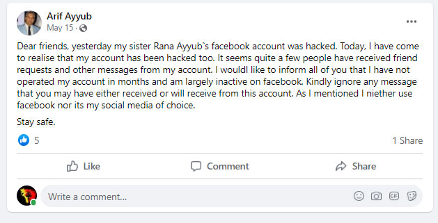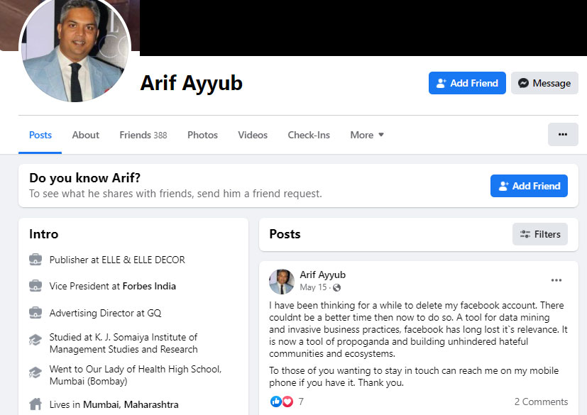 Another person associated with Elle that raised eyebrows is the publisher Arif Ayyub, brother of so-called journalist Rana Ayyub. While he has very little presence on Twitter, he often shares reports and posts about his sister on his Facebook account. While Rana is extremely vocal against the government, it seems like the other Ayyub has toned down his voice on social media but feels free to propagate anti-Hindu material via the magazine.
