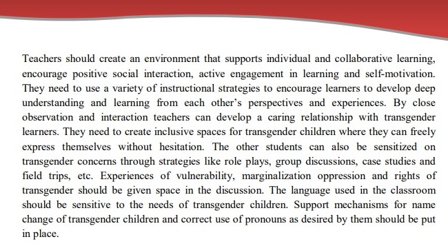 The objective of the training manual is the “sensitization of teachers and teacher educators regarding aspects of gender diversity keeping gender-nonconforming and transgender children at centre stage.”