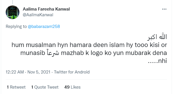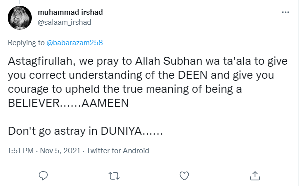 Another Islamist named Muhammad Irshad wished that Allah guide Babar Azam in the right direction (Deen) and provide him with the courage to become a true believer. “‘Don’t grow astray in this world,” he added.
