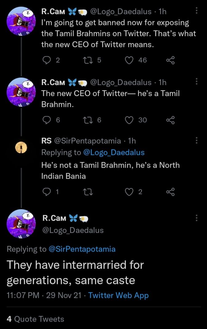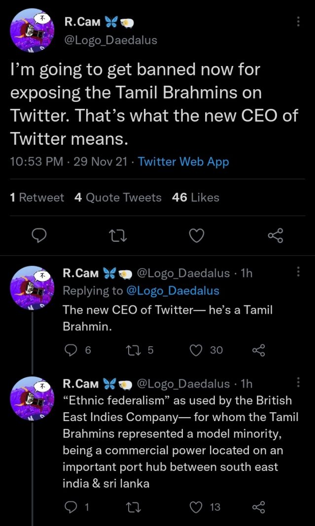 Western racists hate on Parag Agrawal claiming he is Brahmin