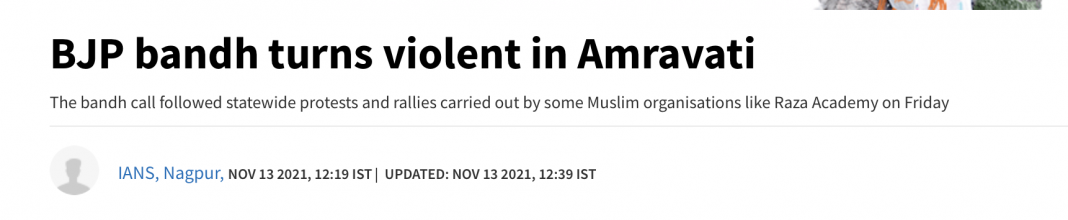 In Maharashtra, it has been long established that Muslim organisations ran amuck because they felt hurt by something that did not even happen in Tripura. According to eyewitnesses, an ancient Shani temple was also damaged by the rioting Muslims. One would imagine that there’s no way the media could possibly twist these facts to somehow paint the Muslim mob as a bunch of possible good samaritans. One would imagine wrong.